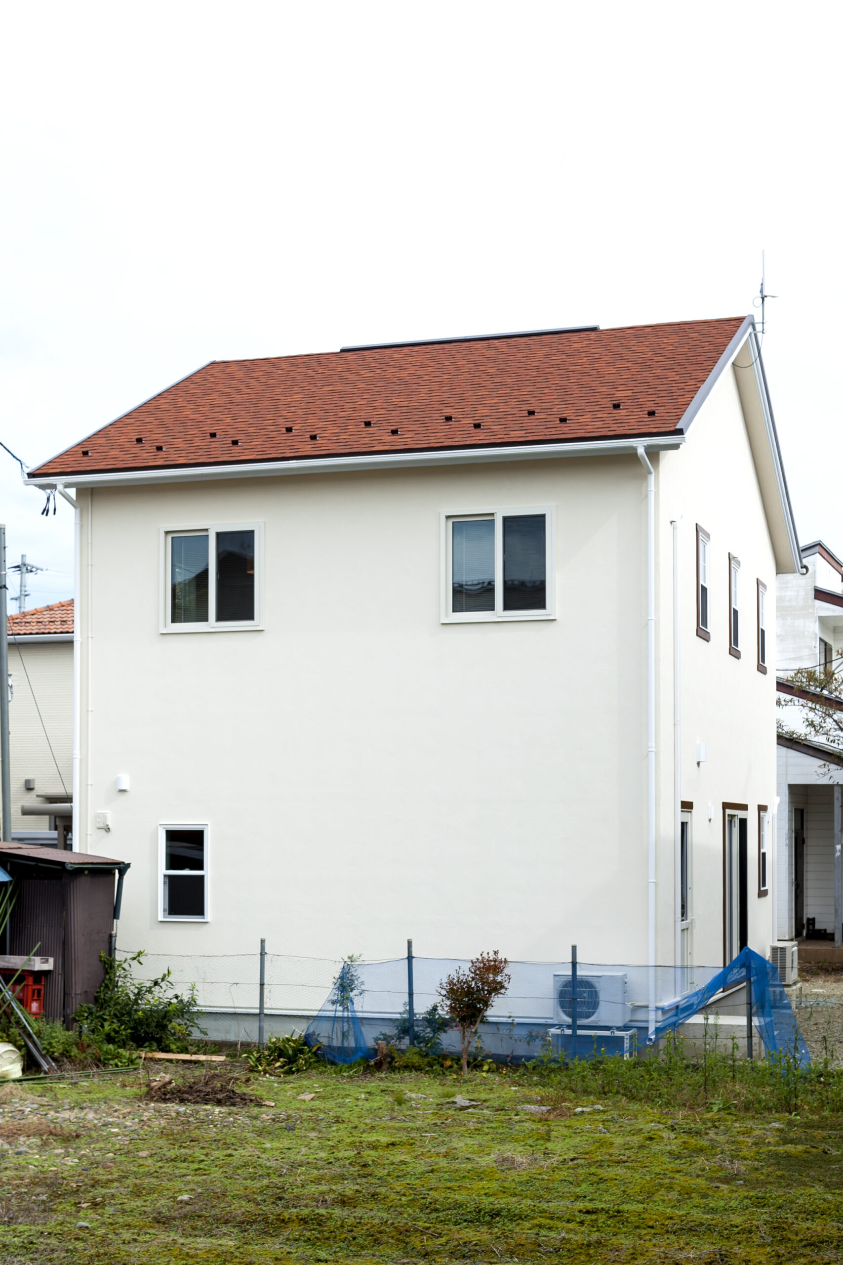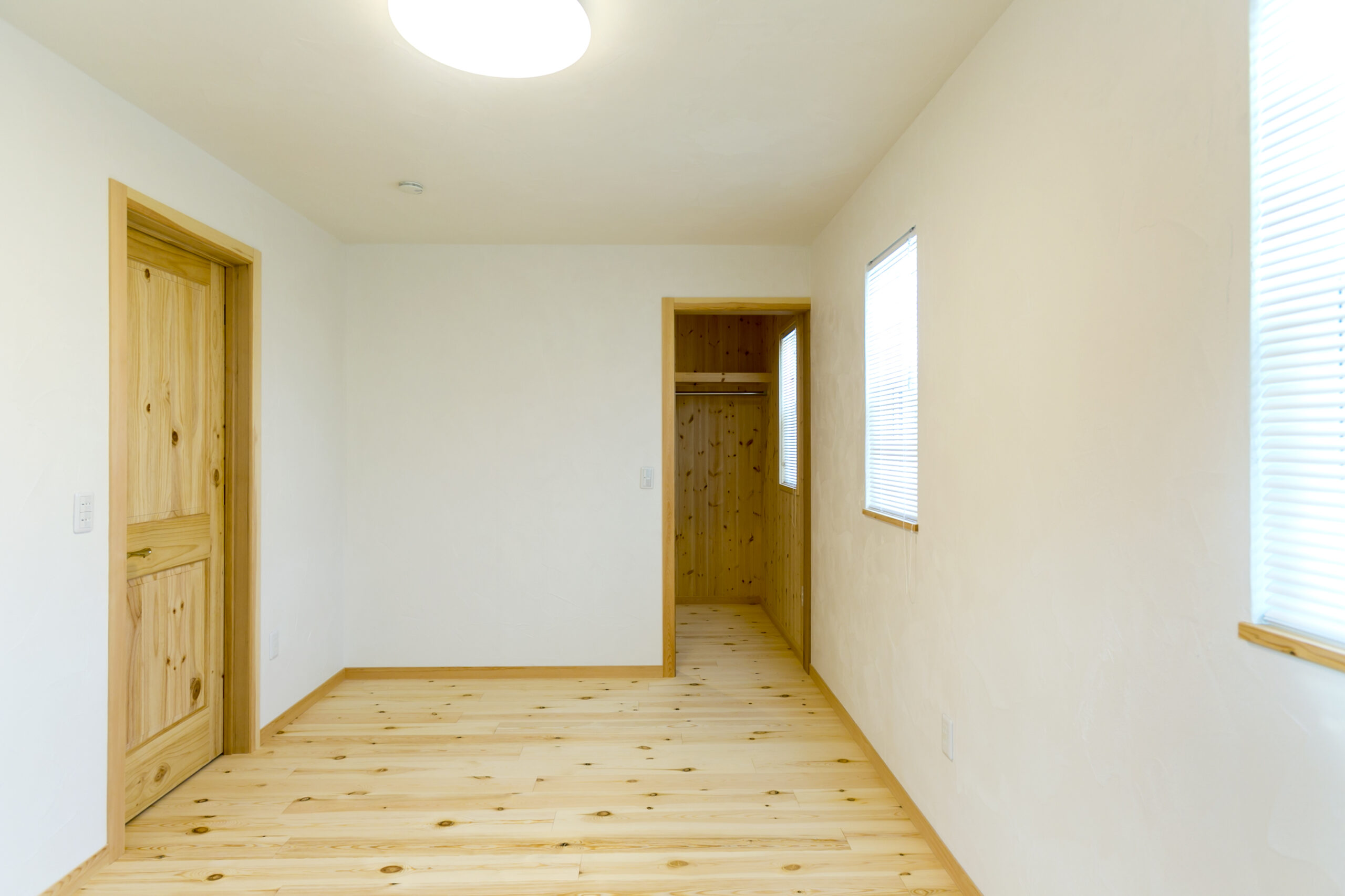 室内は無垢の床と漆喰をベースに、シンプルな動線と間取りでまとめました                              1階と2階で床の仕上げを変え、それぞれ異なる表情を楽しめる住まいです