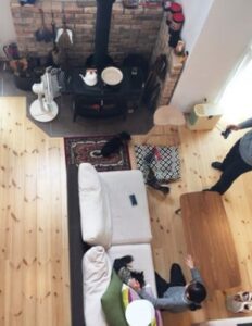広い家になったのに気が付くとここ(薪ストーブ前)に集まっています。