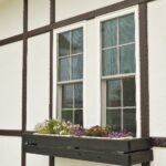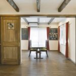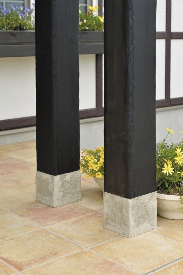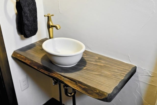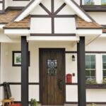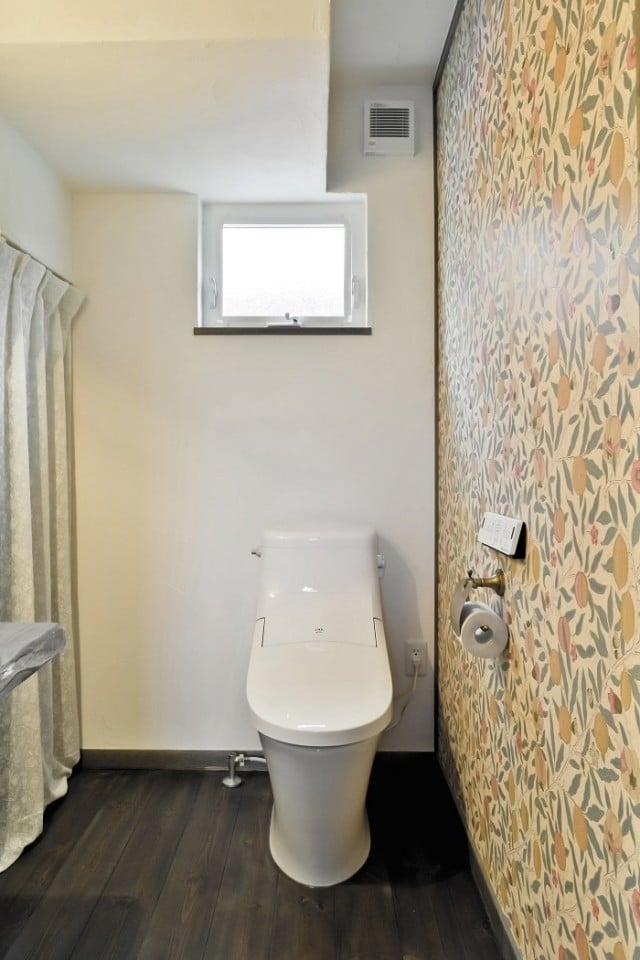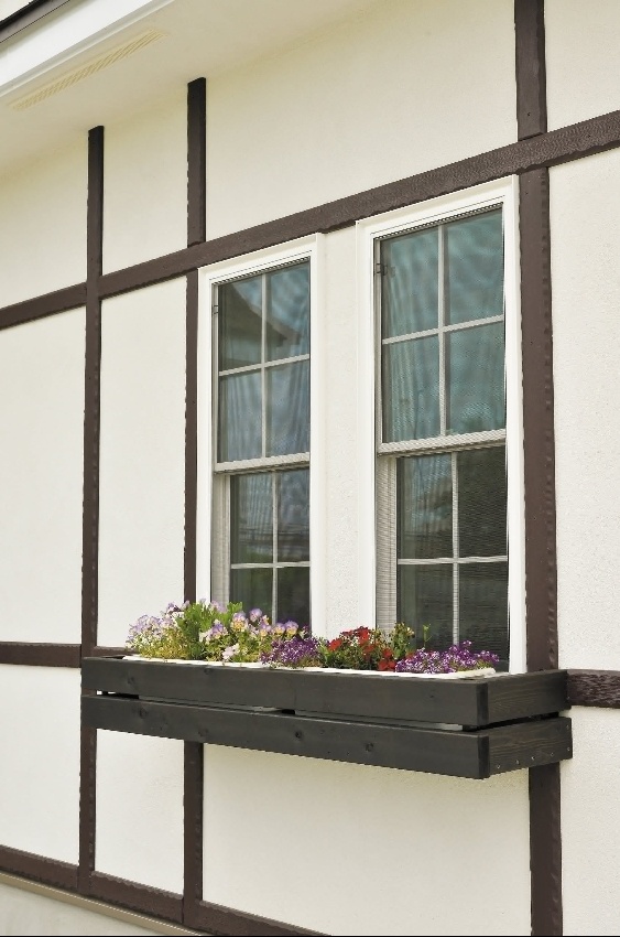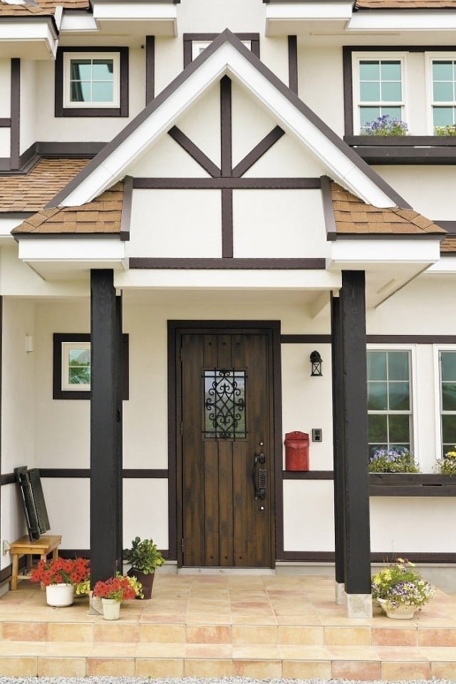 真っ白な漆喰にこげ茶の無垢材がシックで美しい。