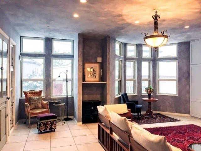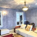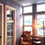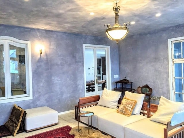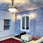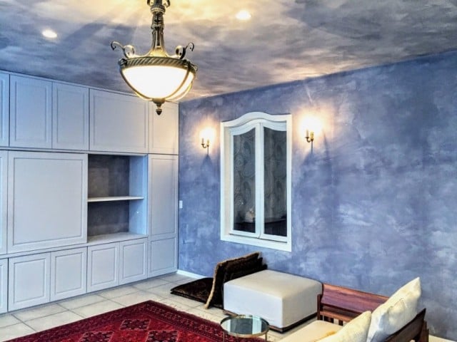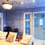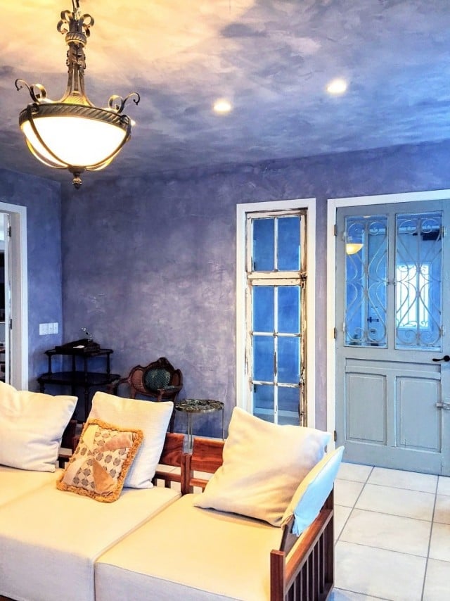 淡いブルーグレーの塗り壁に光があたると陰影が浮き出てきて、それも美しい。